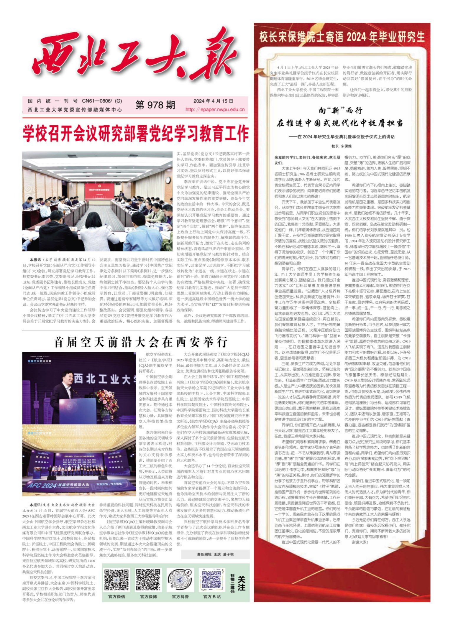 2023-05-05 20:42【人民日?qǐng)?bào)頭版】西北工業(yè)大學(xué)等中管高...來(lái)源:黨委宣傳部